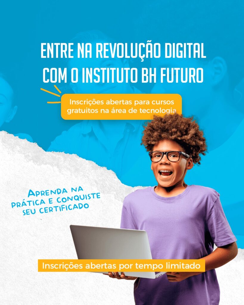 De 28 de janeiro a 3 de fevereiro, estarão abertas as matrículas PRESENCIAIS no Instituto BH Futuro. Turmas para jovens de 14 a 24 anos e turmas para adultos de todas as idades! Cursos Profissionalizantes gratuitos e com certificado de conclusão: