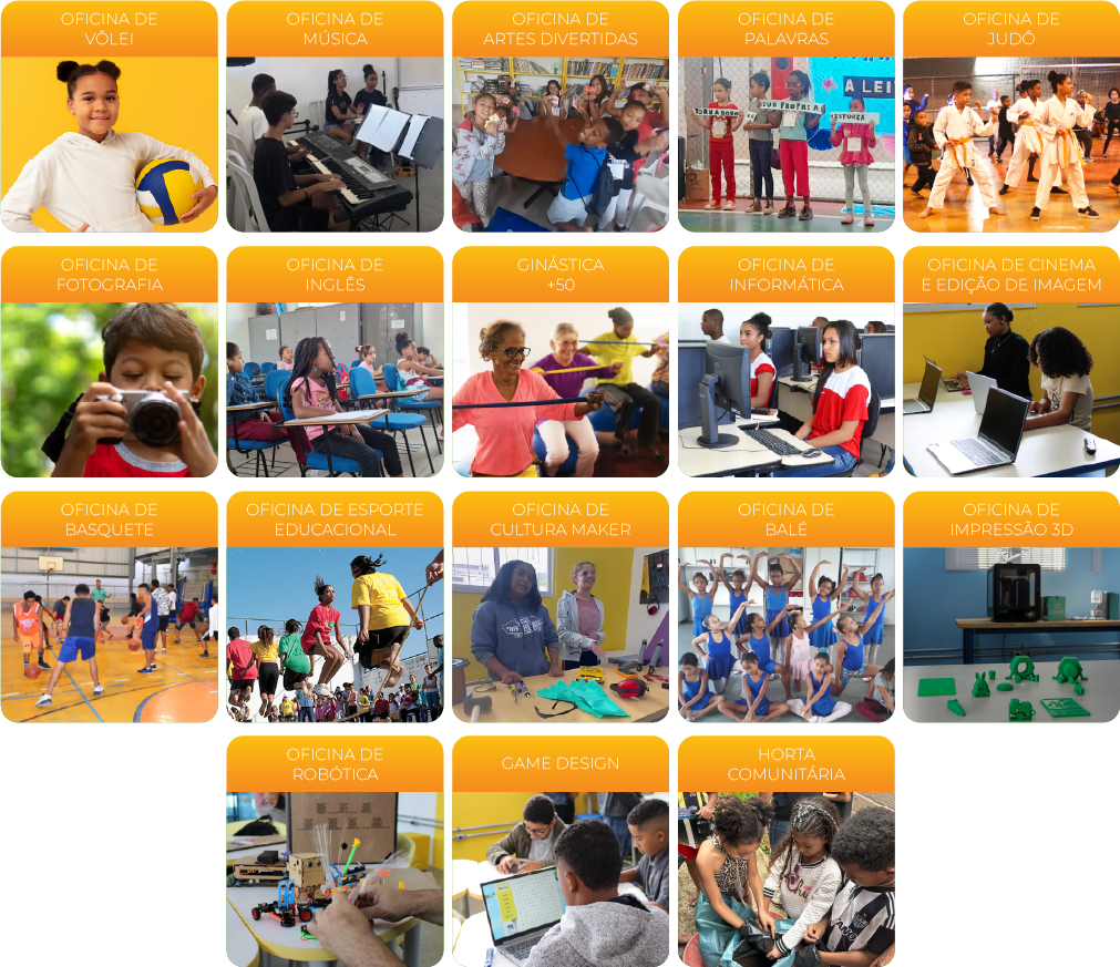 nas áreas de cultura, educação, esporte e empreendedorismo.
